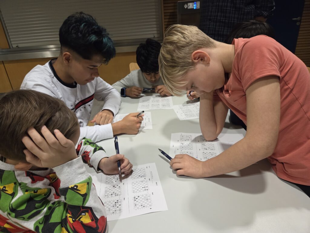 Beachtlich auch, wie gut sich einige Neuzugänge, die nur zum Schnuppern zu Besuch waren, einfügten: zum Beispiel gewann Teo alle drei Partien und holte auch viele Punkte im Aufgaben lösen.